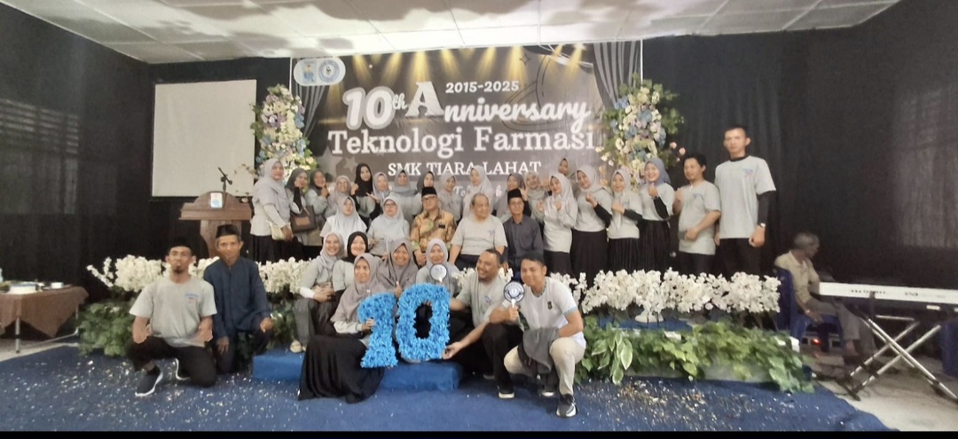 -Sekolah Menengah Kejuruan (SMK) Tiara Lahat, melaksanakan 10 tahun Aniversary teknologi Farmasi SMK Tiara Lahat, 2015 – 2025 yang mengambil tema” Dari Lab kedunia nyata. 10 tahun tak pernah kadaluarsa”, Bertempat di Aula SMK Tiara Lahat, Sabtu (04/10/2025).
