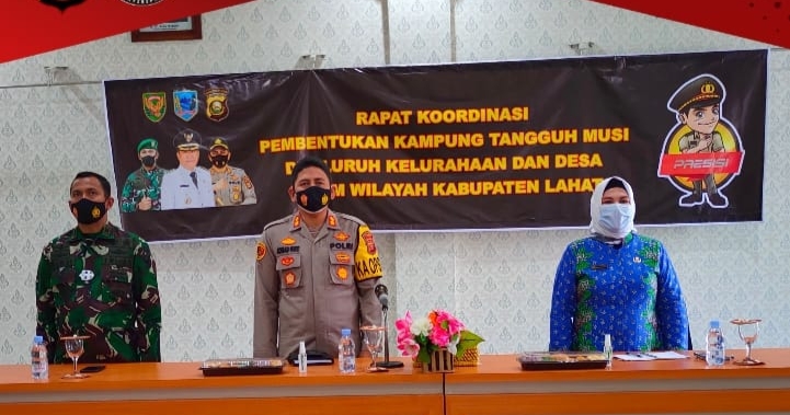 Dalam amanatnya Kapolres Lahat AKBP Achmad Gusti Hartono Sik mengucapkan banyak terima kasih kepada unsur FKPD yang telah hadir dalam acara serta kepada seluruh peserta rapat koordinasi tentang pembentukan kampung tangguh musi.