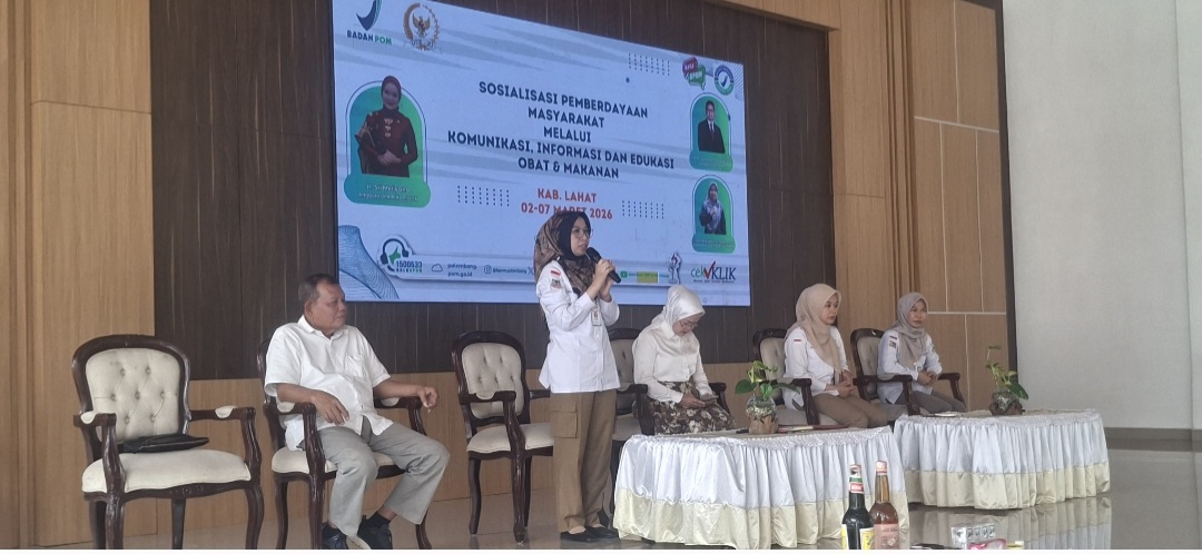 bersama Balai Besar Pengawas Obat dan Makanan (BBPOM) sosialisasi pemberdayaan masyarakat melalui “Komunikasi, Informasi, dan Edukasi (KIE) obat dan Makanan di kabupaten Lahat. Rabu (04/03/2026) bertempat di rumah dinas Bupati Lahat.