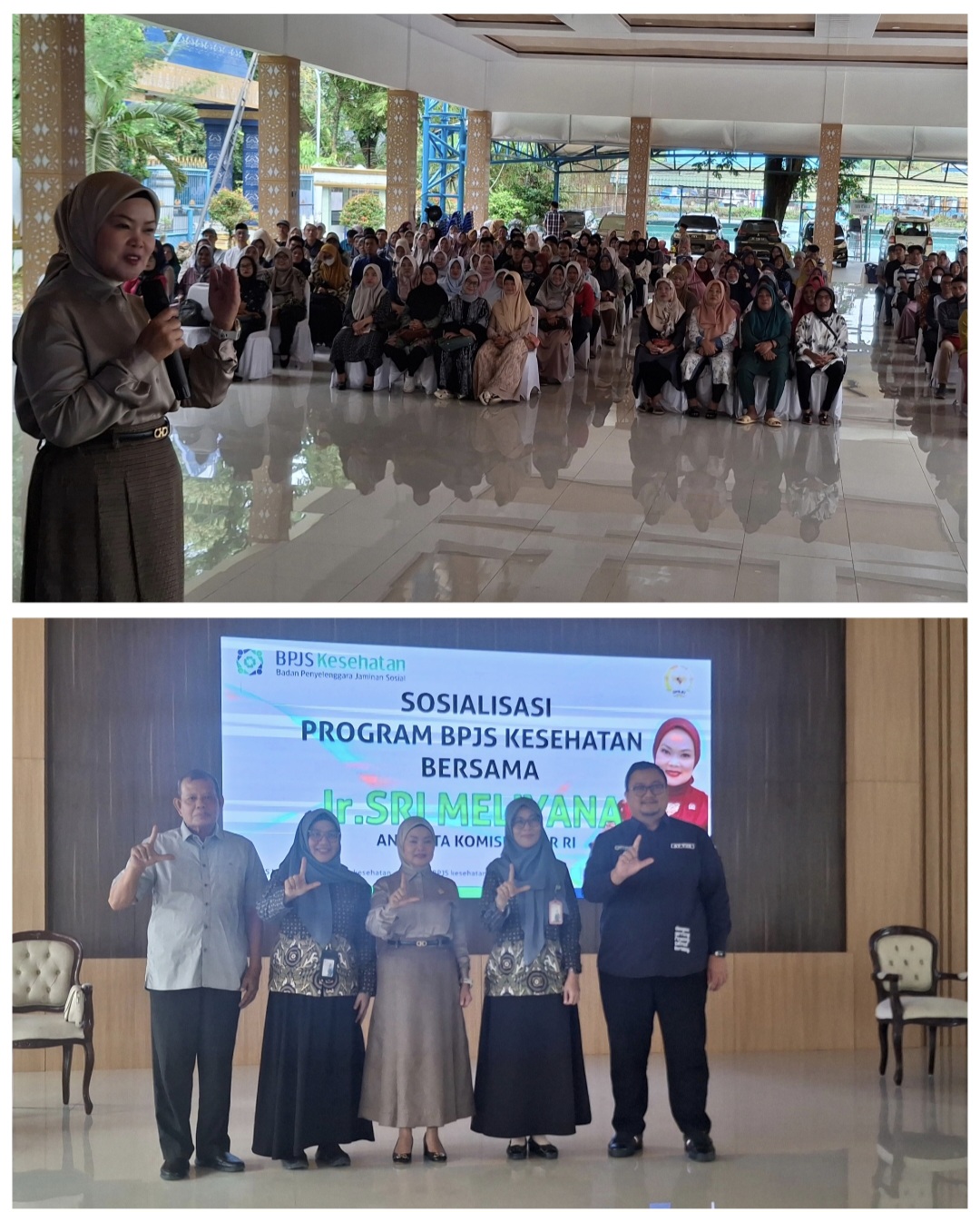 Anggota Komisi IX DPR RI Ir. Sri Meliyana mengatakan, “Tadi kita menyanyikan lagu Indonesia Raya, kenapa karena kita hari ini sedang melaksanakan tugas negara, Kita bersama BPJS kesehatan melaksanakan tugas negara, kalian diundang bersama sama kami juga melaksanakan tugas negara untuk mengikuti kegiatan sosialisasi program BPJS Kesehatan”, ucapnya.