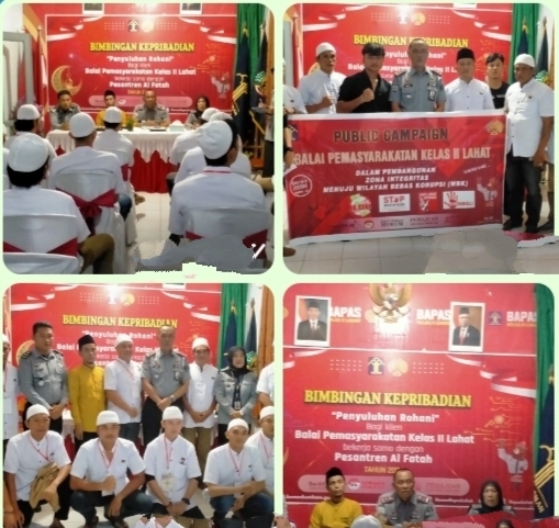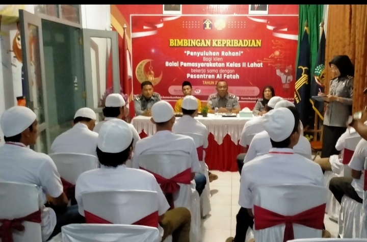 —Balai Pemasyarakatan Kelas II Lahat Kemenkumham Sumsel bekerjasama sama dengan Pesantren Al Fatah melaksanakan Bimbingan kepribadian ” Penyuluhan Rohani” bagi klien. Bertempat di aula Bapas kelas II Lahat Kemenkumham Sumsel. Rabu (28/02/2024)