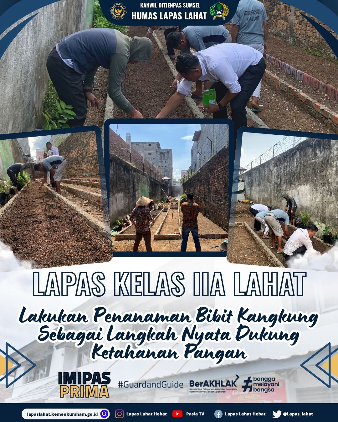 Relasipublik.com | Lahat, – Dalam rangka mendukung program ketahanan pangan nasional serta optimalisasi lahan produktif di lingkungan pemasyarakatan, jajaran Lembaga Pemasyarakatan (Lapas) Kelas IIA Lahat melaksanakan kegiatan penanaman bibit kangkung di area lahan pemanfaatan ketahanan pangan Lapas. Selasa 21 Oktober 2025