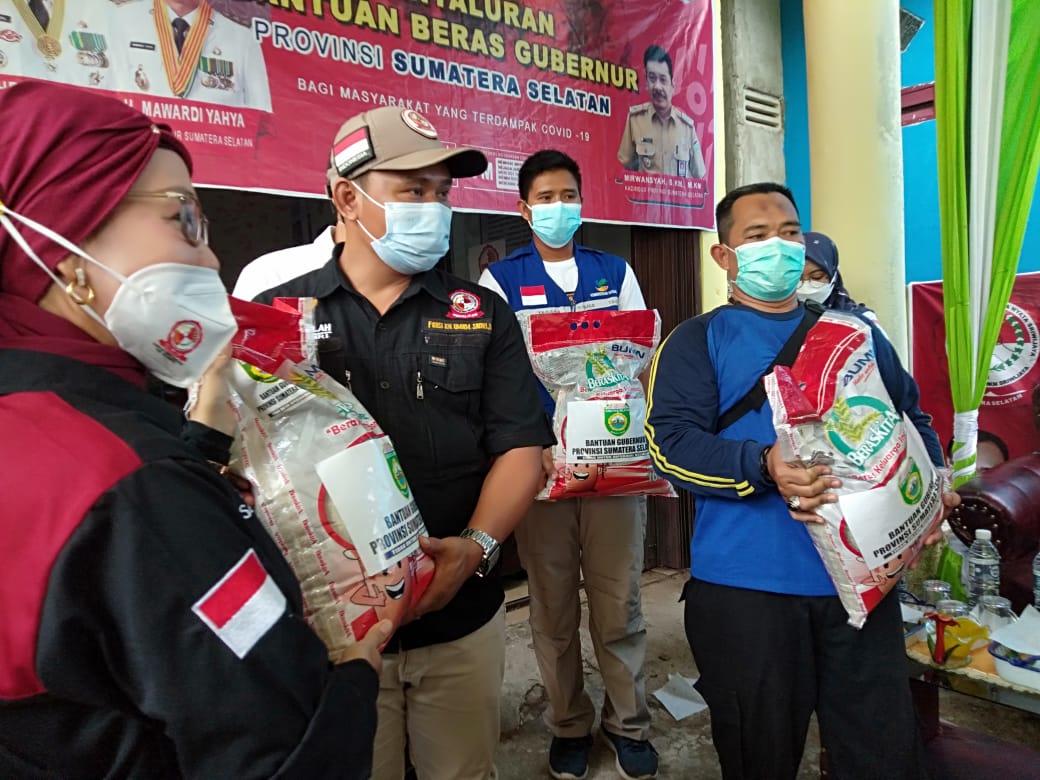 — Forum Silaturahmi Kerja Nyata Sriwijaya Usaha Menengah Kecil Micro (FORSI KN UMKM) Sriwijaya Sumatera Selatan (Sumsel) bersama Dinas Sosial (Dinsos) Provinsi Sumsel, menyalurkan bantuan beras Gubernur untuk masyarakat yang terdampak Covid-19, Rabu (25/8/2021).