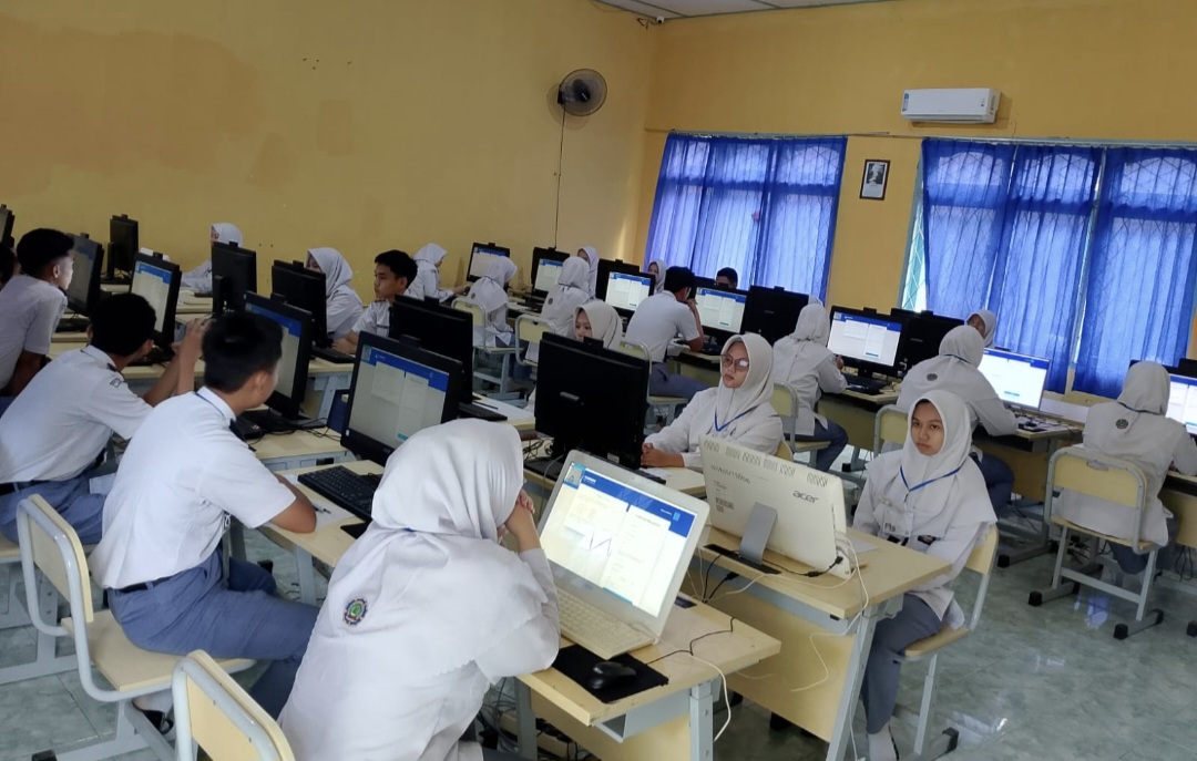 Suasana ujian berjalan kondusif, dengan pengawasan ketat dari pengawas lintas sekolah dan panitia untuk memastikan integritas pelaksanaan.