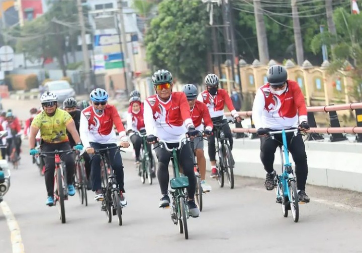 RELASIPUBLIK.COM SUMSEL PALEMBANG,’- Pangdam II/Sriwijaya Mayjen TNI Agus Suhardi dan Kapolda Sumsel Irjen Pol Drs. Toni Harmanto, M.H.Wakapolda Sumsel Brigjen Pol Rudi Setiawan,Sik SH,MH melaksanakan Gowes atau Sepeda Santai bersama PJU Polda Sumsel dan PJU Kodam II/Srwijaya,Forkopimda Sumsel dan sejumlah komponen masyarakat Kota Palembang, Kamis (30/9/2021).