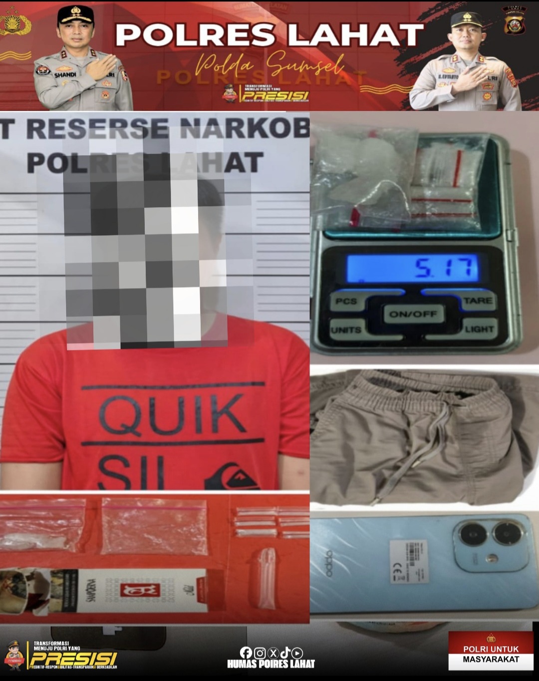 Kapolres Lahat AKBP Novi Edyanto, S.Ik.MIK melalui Kasat Narkoba AKP LAE Tambunan SH. MH, didampingi Kasi Humas AKP Mastoni SE mengungkapkan setelah mendapat informasi anggota langsung bergerak melakukan penyelidikan.