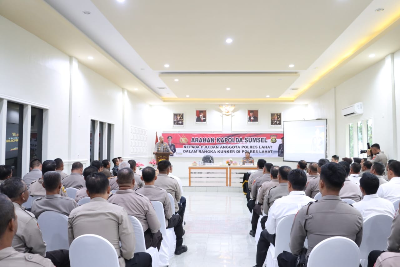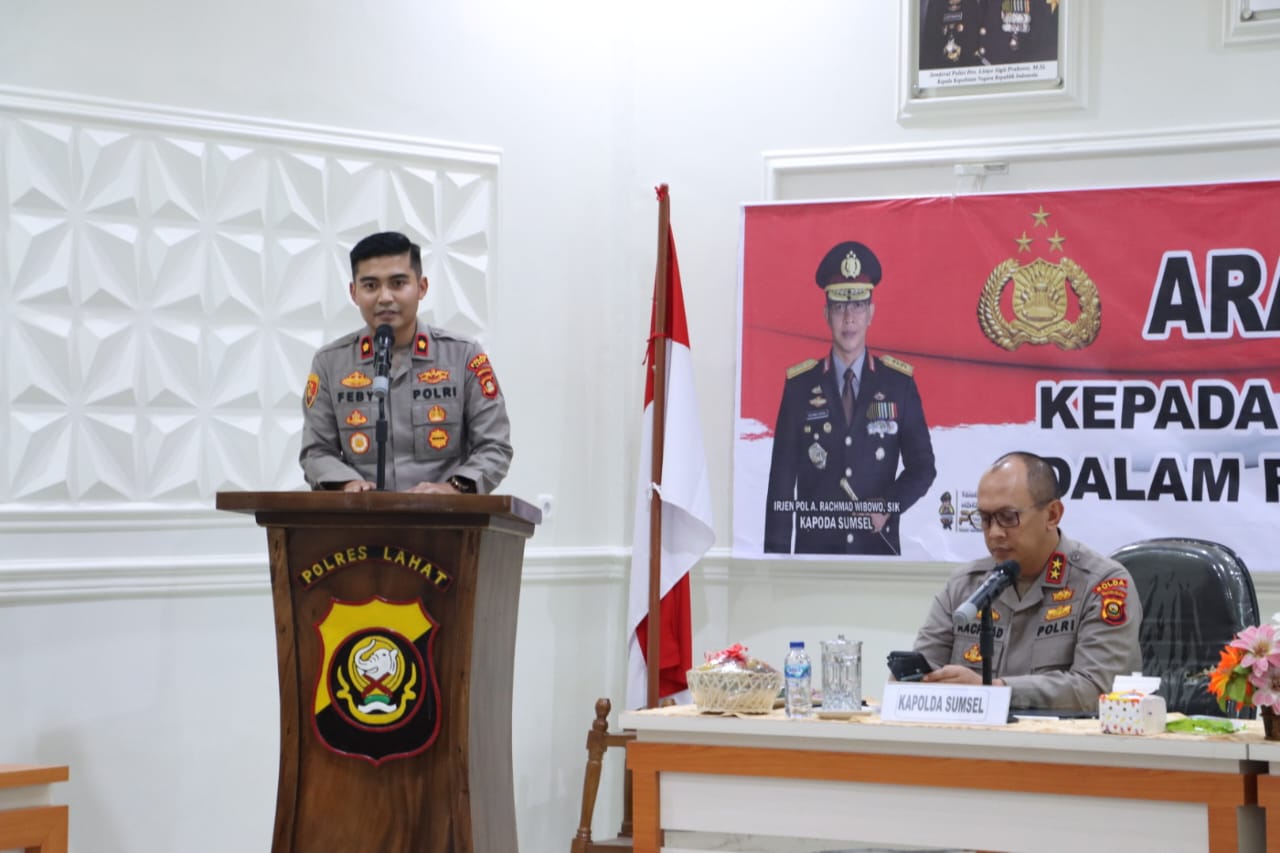 —Kapolda Sumatera Selatan Inspektur Jendral A. Rahmad Wibowo, S. Ik, bersama pejabat Polda Sumsel melakukan kunjungan kerja sekaligus memberikan arahan terhadap personel Polres Lahat.