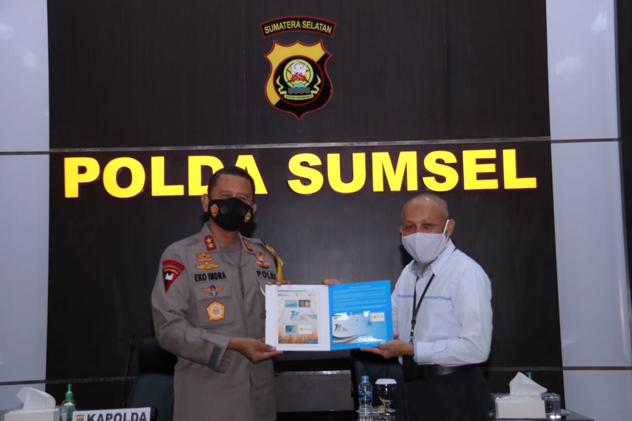 Relasipublik.com | Sumsel – Kapolda Sumsel Irjen Pol Prof Dr Eko Indra Heri S MM didampingi PJU Polda Sumsel menerima Penghargaan dari GM PLN UIKSBS Bapak Djoko Mulyono ,GM PLN WS2JB Bapak Daryono beserta Staf digedung Promoter LT III Ruang Rekonfu Polda Sumsel selasa 3 /11/ 2020.