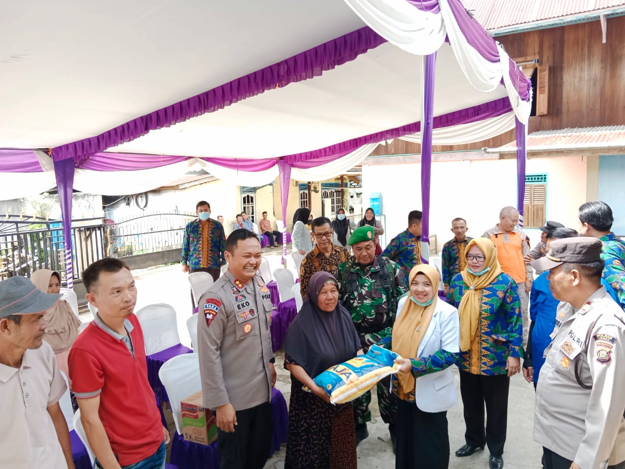 —Kapolres Lahat AKBP Eko Sumaryanto SIK,Pada hari Kamis tanggal 16 Juni 2022 sekira pukul 11.00 wib bertempat di Desa Tertap dan Desa Bandar Aji Kec. Jarai memberikan Bantuan sosial berupa Paket Sembako kepada warga Desa Tertap dan desa Bandar Aji Kec. Jarai kabupaten Lahat yang terkena musibah angin puting beliung.