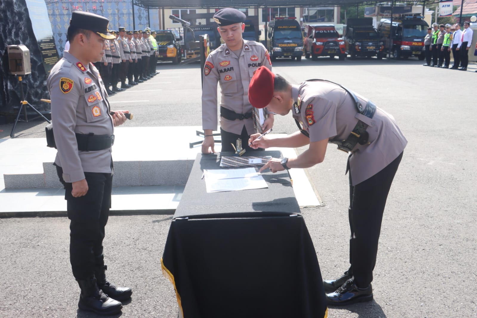 Upacara serah terima jabatan ditutup dengan penandatanganan berita acara, pengambilan sumpah jabatan, serta pemberian ucapan selamat kepada pejabat lama dan baru. Seluruh rangkaian kegiatan berlangsung tertib dan lancar, mencerminkan komitmen Polres Lahat dalam menjaga soliditas organisasi serta meningkatkan kualitas pelayanan kepada masyarakat.