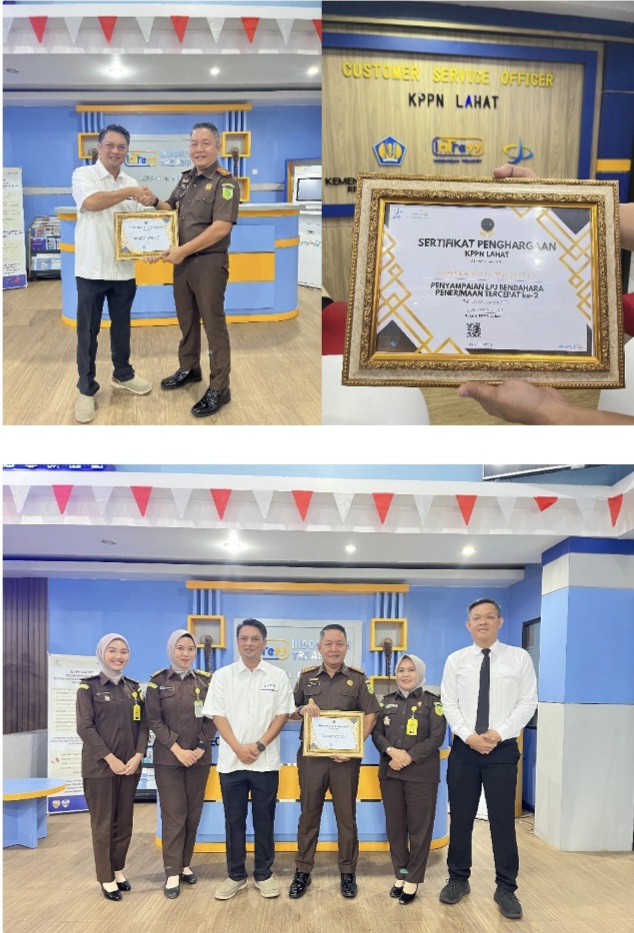 Penghargaan yang diterima berupa Penyampaian Laporan Pertanggungjawaban (LPJ) Bendahara Penerimaan Tercepat ke-2 tahun anggaran 2024. Kejaksaan Negeri Lahat berhasil unggul dari 80 (delapan puluh) satuan kerja di wilayah kerja KPPN Lahat yang meliputi 4 (empat) Kabupaten/Kota yaitu Kabupaten Lahat, Kabupaten Muara Enim, Kabupaten Empat Lawang, dan Kota Pagaralam.