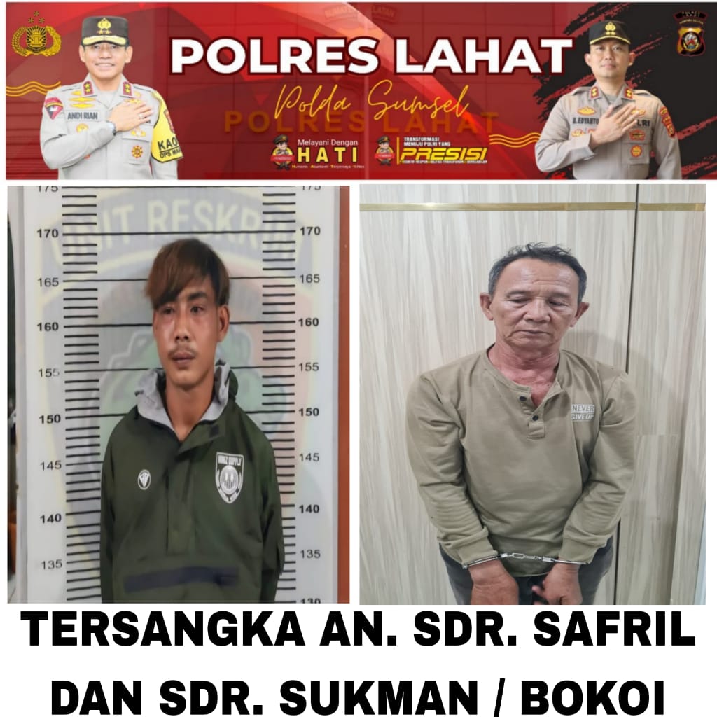 Adapun tersangka yaitu Sukman bin Karim (63 tahun) pekerjaan buruh tani beralamat Jalan Laskar Syamsudin Talang berangin Kelurahan Bandar Agung Kecamatan Lahat Kabupaten Lahat dan April Mahendra usia 20 tahun ( ditahan dalam perkara lain) pekerjaan tidak bekerja beralamat Desa Pulau Panggung Kecamatan Tanjung Agung Kabupaten Muara Enim.