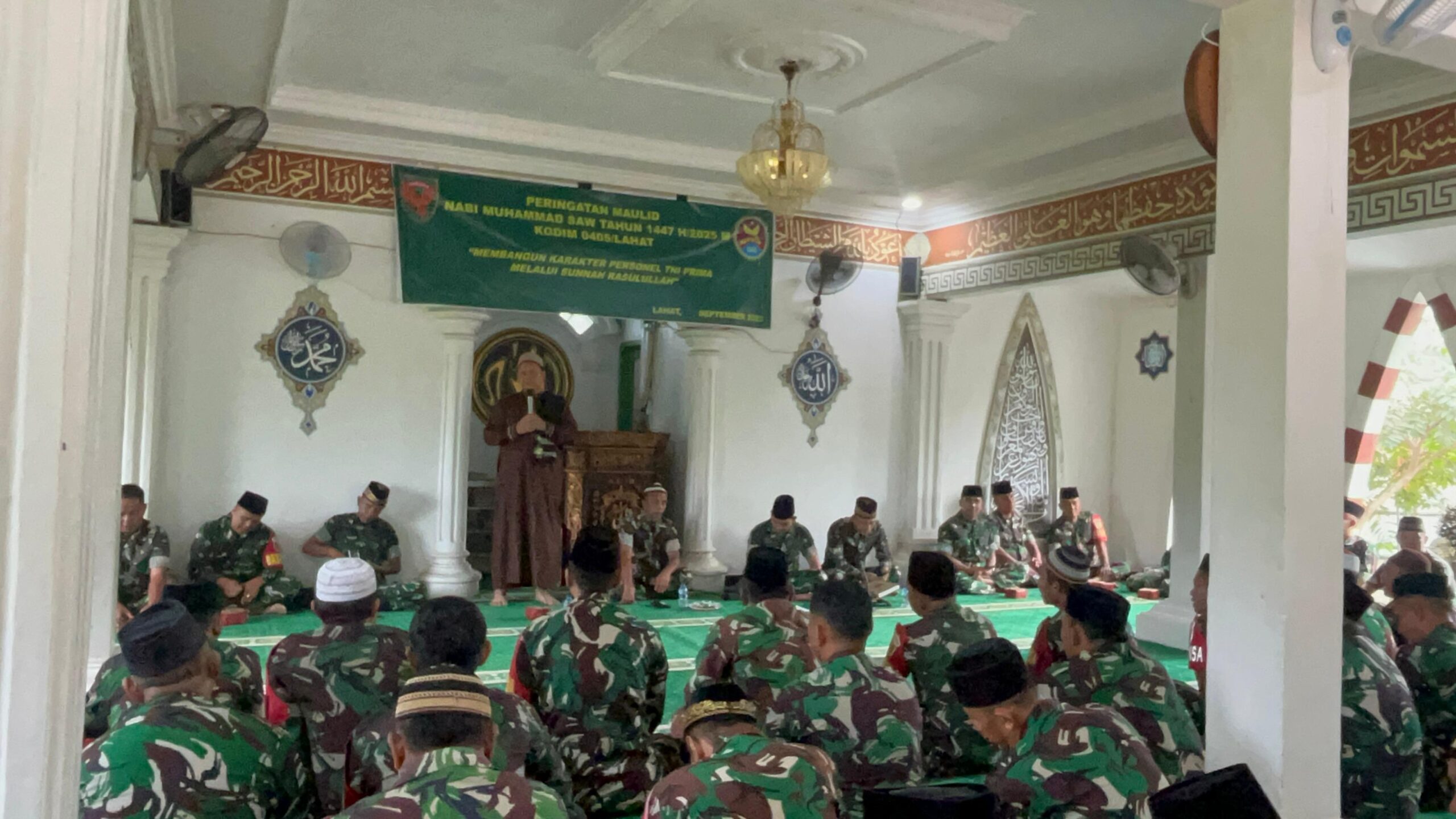 Relasipublik.com | Lahat,- Kodim 0405/Lahat melaksanakan acara peringatan Maulid Nabi Muhammad SAW tahun 1447 H / 2025 M pada hari ini, dalam suasana penuh hikmat dan kebersamaan. Kegiatan ini mengusung tema “Membangun Karakter Personel TNI Melalui Sunnah Rasulullah”, yang bertujuan untuk menanamkan nilai nilai keteladanan Nabi Muhammad SAW dalam kehidupan prajurit TNI, baik dalam bertugas maupun dalam kehidupan sehari-hari. Senin (08/09/2025) 08.00 WIB