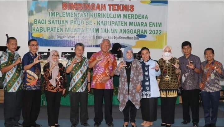 —Guna memberikan pemahaman dalam pengimplementasian sistem pembelajaran kurikulum merdeka bagi para tenaga pendidik yang mengajar di satuan Pendidikan Anak Usia Dini (PAUD) di Kabupaten Muara Enim, Kamis pagi (04/08) Bupati Muara Enim diwakili Pj. Sekretaris Daerah, H. Riswandar, S.H., M.H., membuka Bimbingan Teknis (Bimtek) implementasi kurikulum merdeka bagi satuan PAUD di Kabupaten Muara Enim. Kegiatan yang digelar di Ballroom Hotel Griya Sintesa tersebut, dalam rangka optimalisasi peluncuran kurikulum merdeka melalui kegiatan sosialisasi dan Bimtek bagi pemangku kepentingan yaitu dinas pendididikan termasuk penilik dan pengawas, organisasi mitra serta mitra pembangunan yang bertugas mendampingi satuan PAUD di daerah.