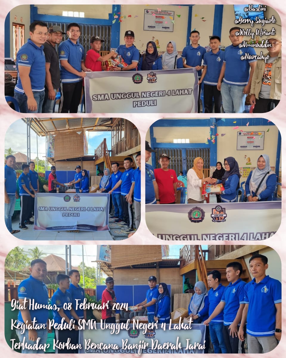 —Pada Hari Kamis, 08 Februari 2024 SMA Unggul Negeri 4 Lahat melakukan Kegiatan Peduli Kasih terhadap sesama untuk korban bencana banjir di 1 titik lokasi desa di kecamatan Jarai kabupaten Lahat.