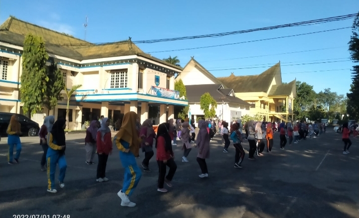 Kegiatan Senam Bersama tersebut diikuti oleh seluruh jajaran pejabat hingga ASN di Lingkup Pemda Kabupaten Lahat dengan instruktur senam yang di pandu oleh 3 orang dari sanggar Puji .