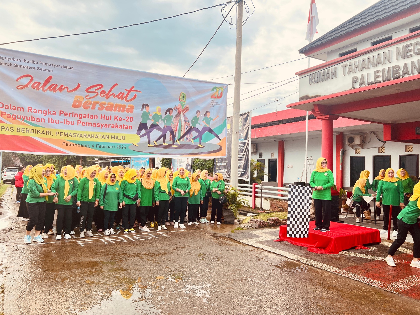 — Dalam Rangka Hari Ulang Tahun (HUT) ke-20 Paguyuban Ibu-Ibu Pemasyarakatan (PIPAS) tahun 2024 yang jatuh pada tanggal 24 Januari 2024, Kanwil Kemenkumham Sumsel menggelar kegiatan jalan sehat bersama jajaran PIPAS di lingkungan Kantor Wilayah Kementerian Hukum dan Hak Asasi Manusia (Kemenkumham) Sumatera Selatan di Palembang, Minggu (4/2/2024).
