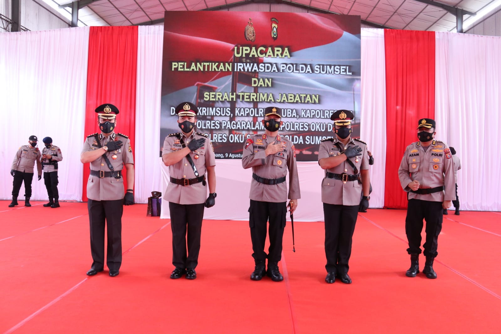 Serah terima jabatan (Sertijab) ini dilakukan langsung oleh Kapolda Sumsel Irjen Pol Prof Dr Eko Indra Heri S, MM di Lapangan Tenis Indor Paakri Palembang Senin (09/08/
