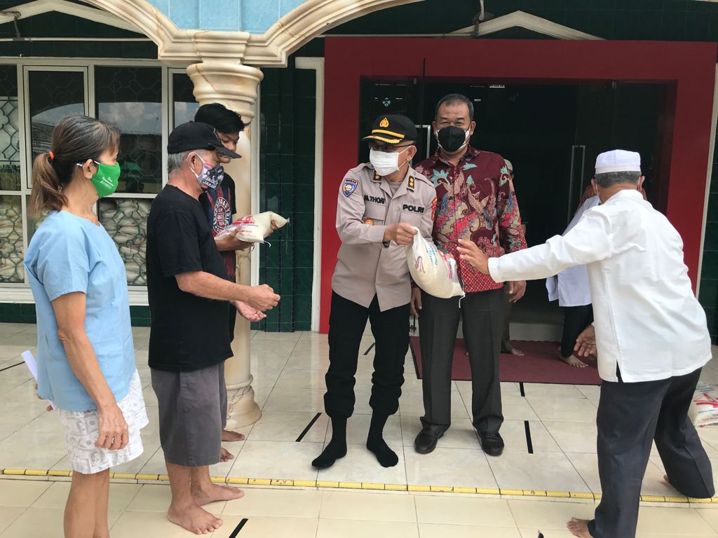 Kabid Labfor Polda Sumsel,didampingi PJU Polda Sumsel , melaksanakan baksos di Masjid Jami Hidayah Demang Jl.Demang Lebar Daun Lr. Sandes Palembangi, mendatangi sejumlah rumah dan warung yang terpaksa menutup usahanya selama PPKM mikro.
