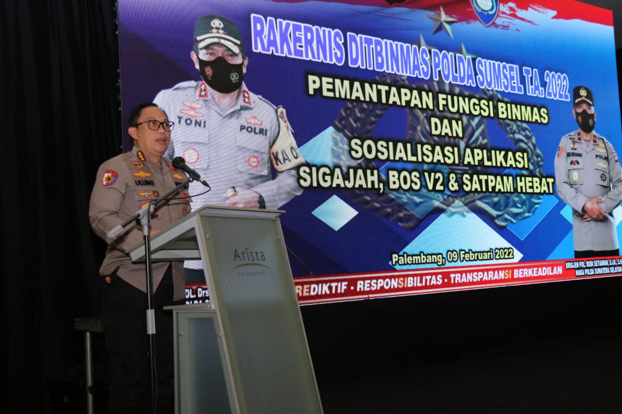 – Kapolda Sumsel, Irjen Pol Drs Toni Harmanto MH melalui Irwasda Polda Sumsel, Kombes Pol Drs Ulung Samporna Jaya SIK MH membuka latihan teknis fungsi Binmas Polda Sumsel 2022 di Hotel Arista Palembang, Rabu (9/2).