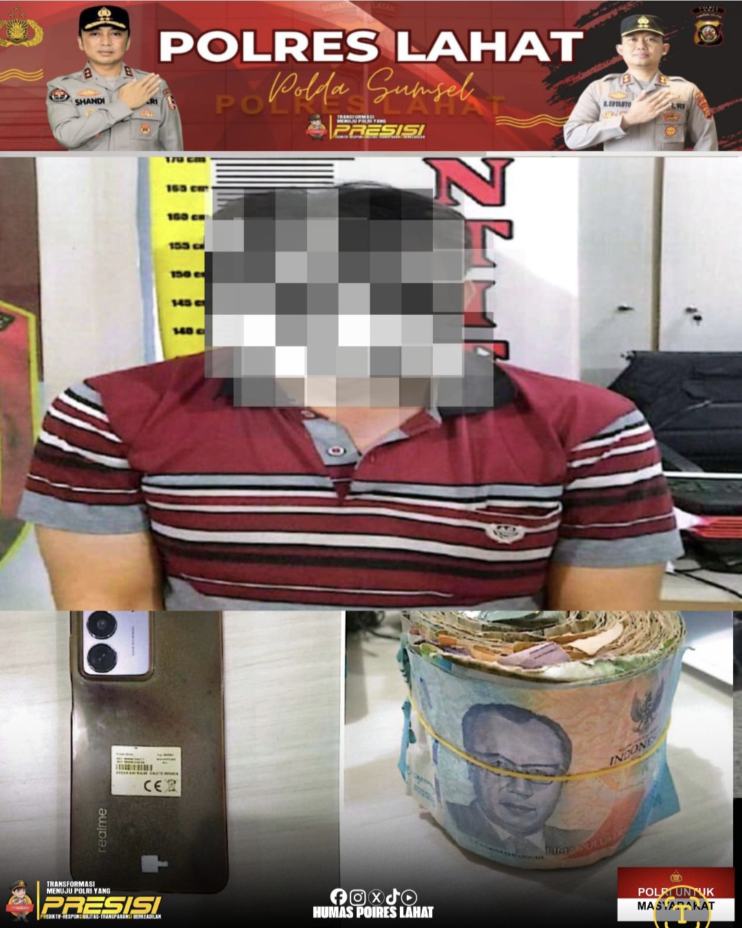 Setelah dilakukan penyelidikan berupa sasaran orang dan tempat telah di ketahui Tim langsung melakukan penangkapan terhadap saudara E.P bin S, pekerjaan buruh, alamat kelurahan pasar bawah kecamatan kota lahat, pada hari kamis 26 februari 2026 sekitar pukul 17.00 wib di pasar lematang lahat dengan tidak melakukan perlawanan dengan barang bukti berupa uang tunai sebesar Rp. 1.354.000 ( satu juta tiga ratus lima puluh empat ribu rupiah), 1 unit Hp merk Realme warna hitam, dan diakui oleh tersangka. Kemudian tersangka dan barang bukti diamankan di Satreskrim Polres Lahat guna kepentingan penyidikan.