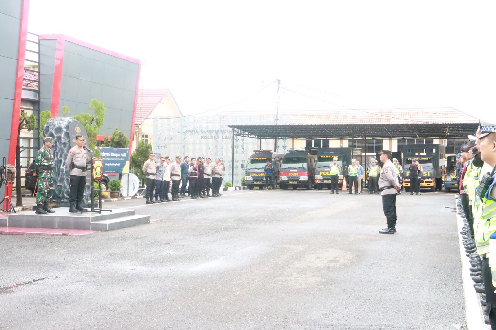 Apel gabungan ini diikuti oleh personel gabungan Polres Lahat, Kodim 0405 Lahat, Satpol PP, Dinas Perhubungan, serta instansi terkait lainnya. Turut hadir pula pejabat utama Polres Lahat, Forkopimda, dan perwakilan penyelenggara Pemilu di Kabupaten Lahat.