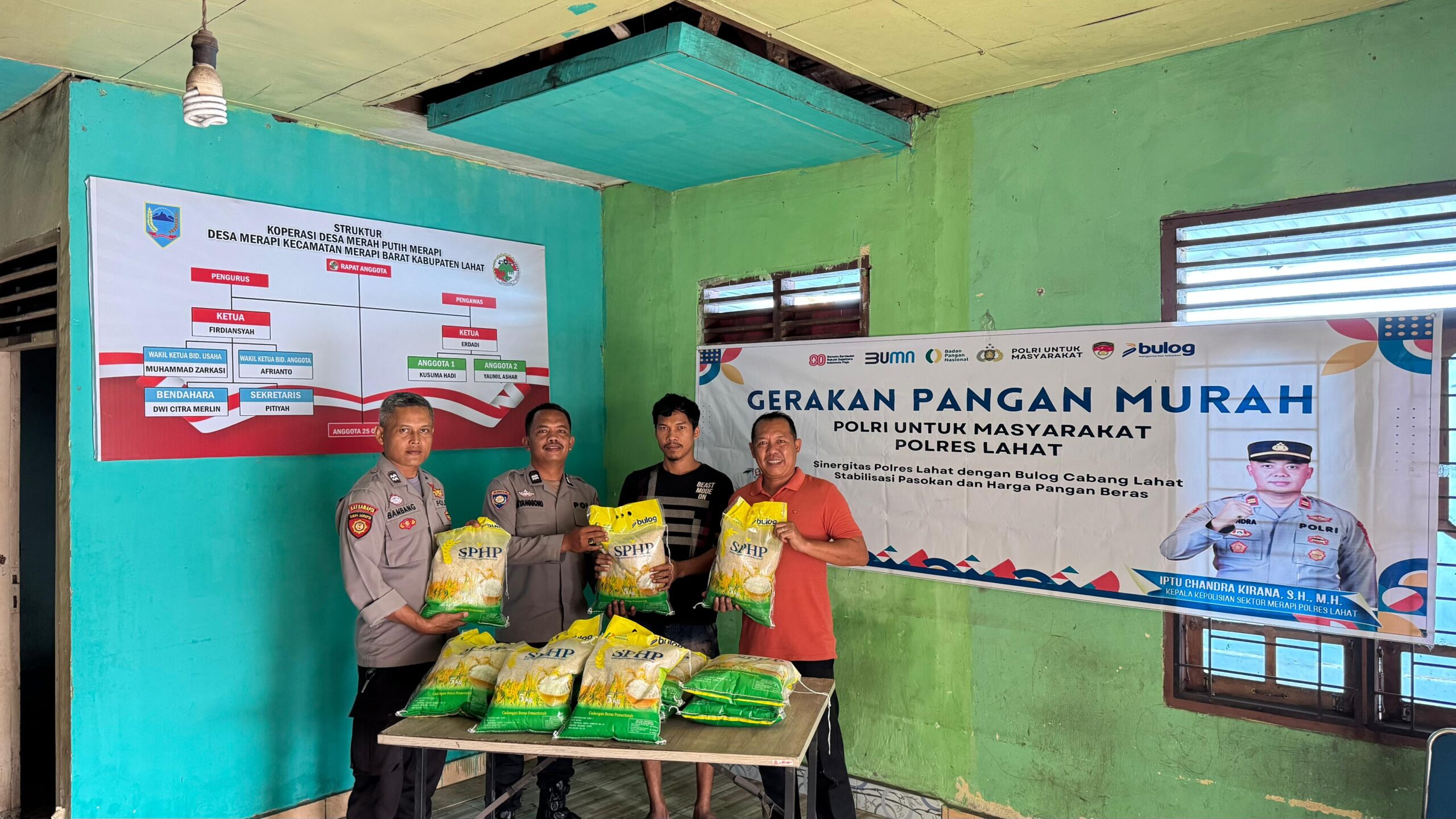 Kegiatan GPM (Gerakan Pangan Murah) Polri Untuk Masyarakat, Sinergitas Polres Lahat / Polsek Merapi dengan Bulog Cabang Lahat guna Stabilitas Pasokan dan Harga Pangan Beras dilaksanakan untuk membantu warga / masyarakat Kab. Lahat khususnya wilayah merapi area dalam memenuhi kebutuhan pangan sehari-hari. (EY)
