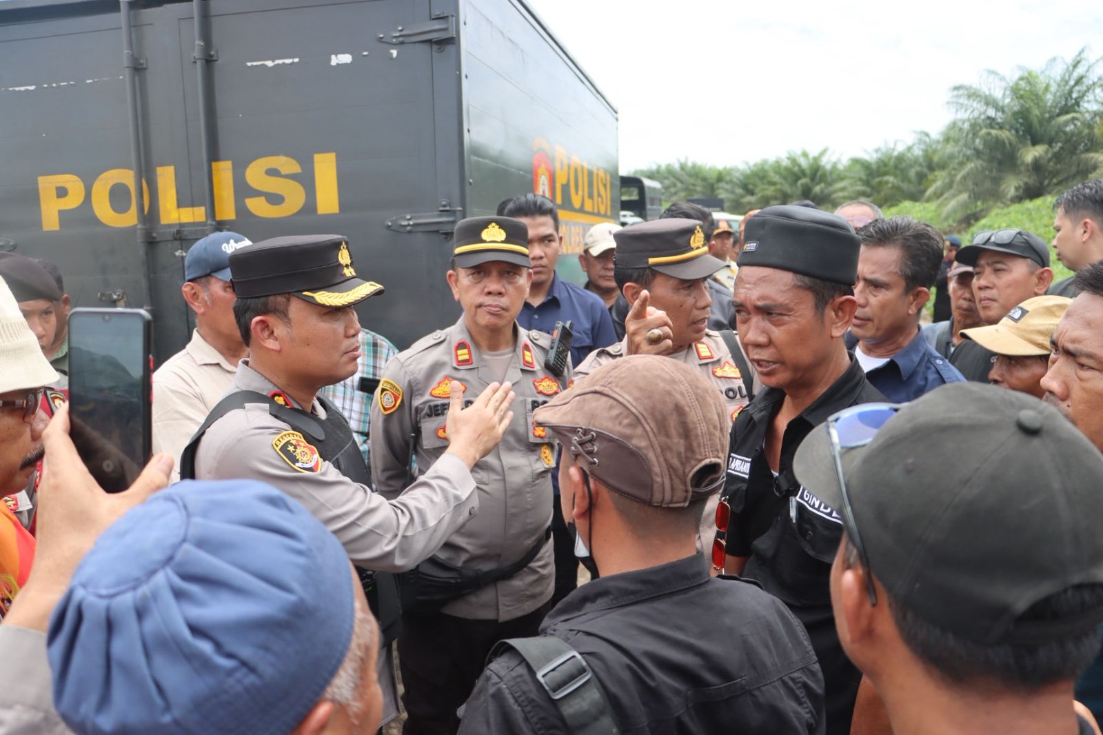 Relasipublik.com | Lahat, Pada hari Kamis tanggal 02 Oktober 2025 pukul 10.20 Wib bertempat di jalan pabrik kelapa sawit PT. SMS Desa Sungai Laru Kec. Kikim Tengah Kab. Lahat, Kapolres Lahat AKBP Novi Edyanto SIK.MIK, yang di dampingi Waka Polres Kompol Liswan Nurhapis SH, Kabag Ops Kompol Toni Arman SH.MSi, kasat Samapta AKP Heri Irawan SE.MM, Kasat Reskrim AKP Rizki Ridho Pratama STrk.SIK.MSi, Kasat Binmas AKP Heri Jon Pajri SH, Kasat Intel Iptu Faisal Zunaidi STrk, Kasi Humas AKP Mastoni SE, Kasi Propam AKP Edwar Gultom, para Kapolsek Kikim area mengawal dan mengamankan Aksi Unjuk Rasa Damai masyarakat 32 (tiga puluh dua) Desa Kec. Kikim Area (Kikim Timur, Kikim Tengah, Kikim Selatan, Kikim Barat) dan Kec. Gumay Talang Kab. Lahat dengan tuntutan penolakan perpanjangan HGU PT. SMS Grup dalam wilayah Kab. Lahat.
