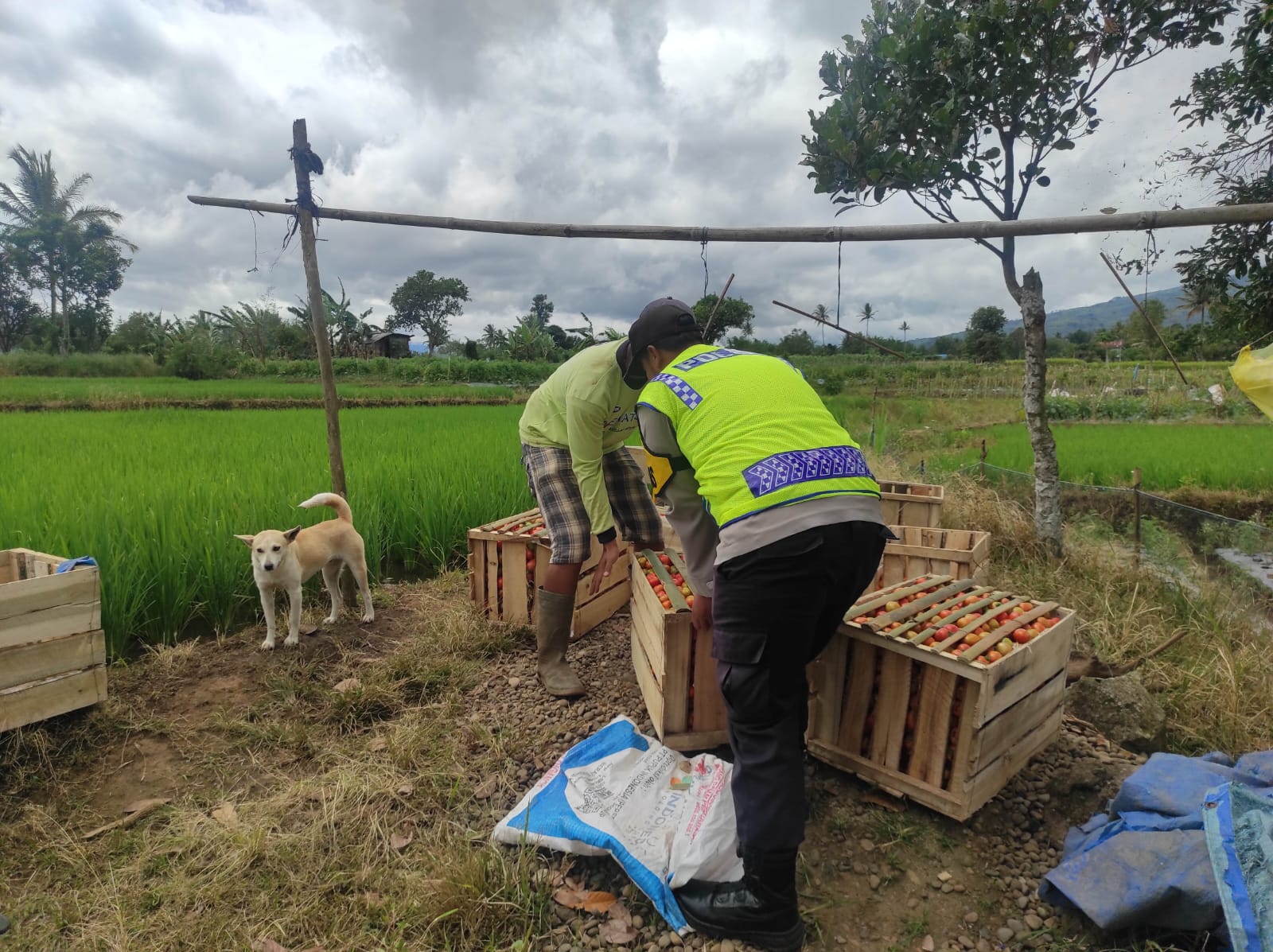 Polri Sahabat Petani, Bhabinkamtibmas Polsek Jarai Polres Lahat Membantu Warga Membawa Hasil Tanaman Tomat