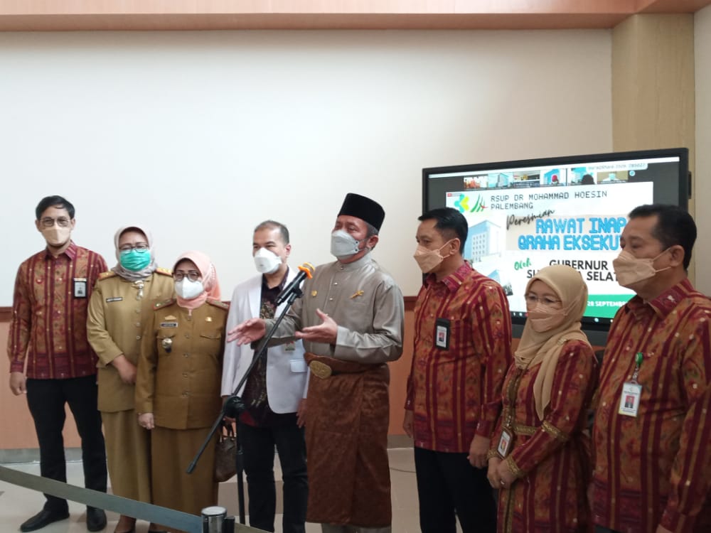 RELASIPUBLIK.COM SUMSEL Palembang-Peresmian rawat inap graha eksekutif Rumah Sakit Umum Palembang Dra. Mohammad Hoesin Palembang yang di gelar di Aula lantai 8 gedung graha eksekutif RSMH Palembang, Selasa (28/9/2021).
