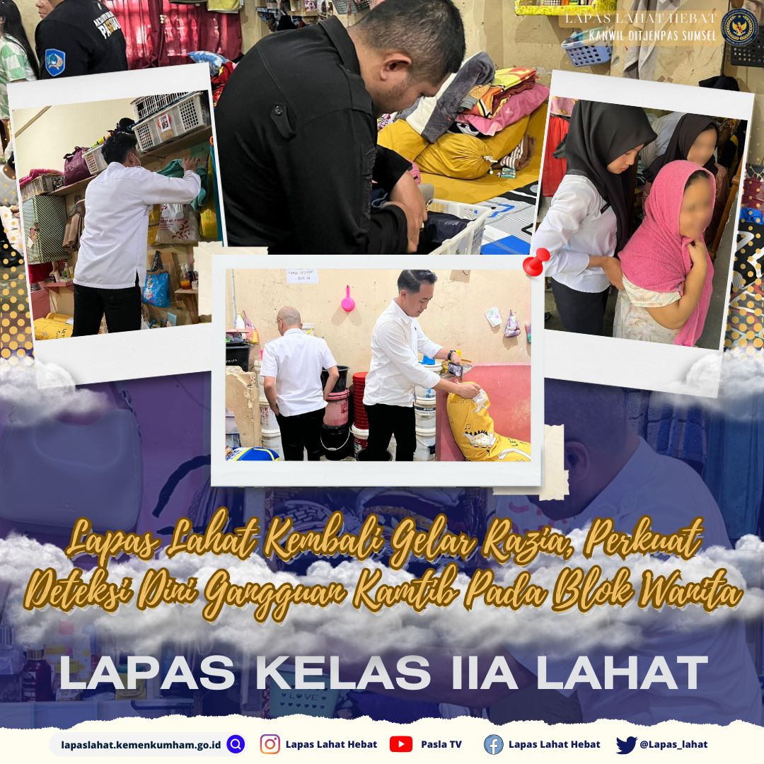Relasipublik.com | Lahat, – Atas perintah langsung Kepala Lapas Kelas IIA Lahat, Reza Meidiansyah Purnama, jajaran pengamanan bersama staf wanita melaksanakan razia di Blok Hunian Wanita (Blok W). Rabu 24 September 2025 Kegiatan ini dipimpin oleh Kepala Kesatuan Pengamanan Lapas (Ka. KPLP) dan Kepala Seksi Administrasi Keamanan dan Ketertiban (Kasi Kamtib), dengan melibatkan Regu Pengamanan I serta staf wanita Lapas Lahat.