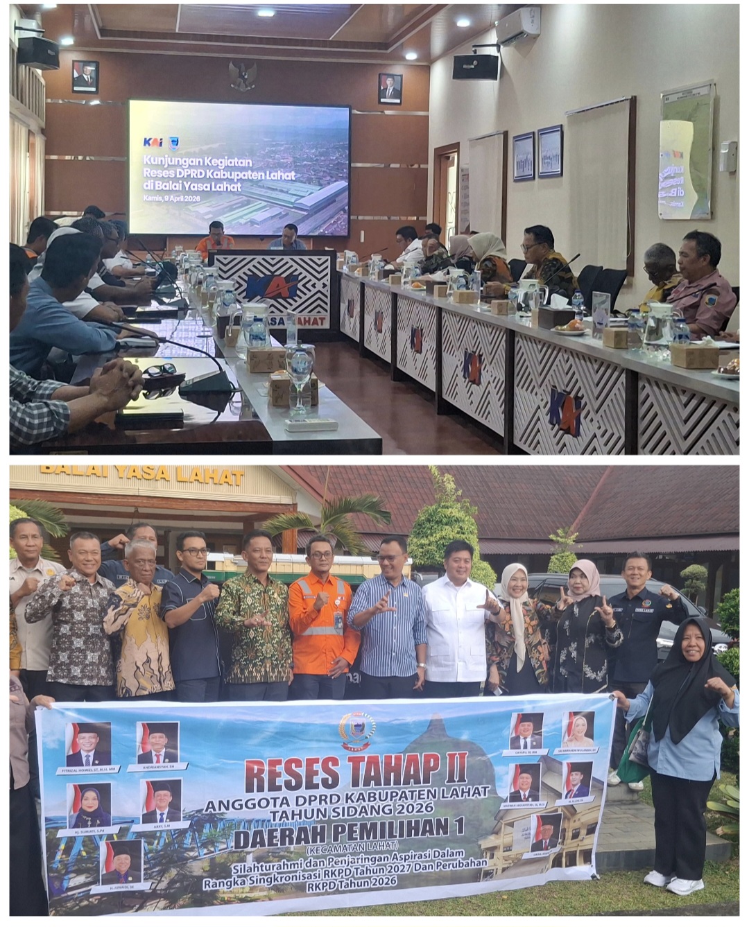 -Executive Vice President (EVP) Unit Pelaksana Teknis (UPT) Balai Yasa Lahat Abdul Rochman Karim dan para Manajer UPT Balai Yasa Lahat beserta perwakilan Divre 3 sambut langsung kedatangan Anggota Dewan Perwakilan Rakyat Daerah (DPRD) kabupaten Lahat daerah pemilihan 1 ( kecamatan Lahat) kamis (09/04/2026) .