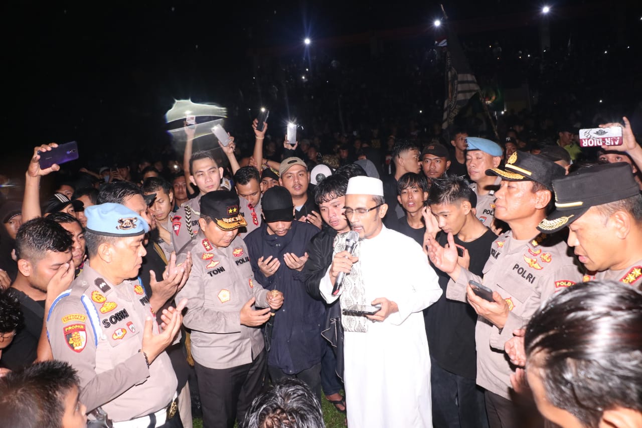 Doa bersama ini dihadiri Kapolda Sumsel Irjen Pol Toni Harmanto PJU Polda Sumsel, Kapolrestabes Palembang Kombes Pol Mukhammad Ngajib Perwakilan Aremania – Suporter Arema Fc yang berdomisili di palembang serta simpatisan sepak bola