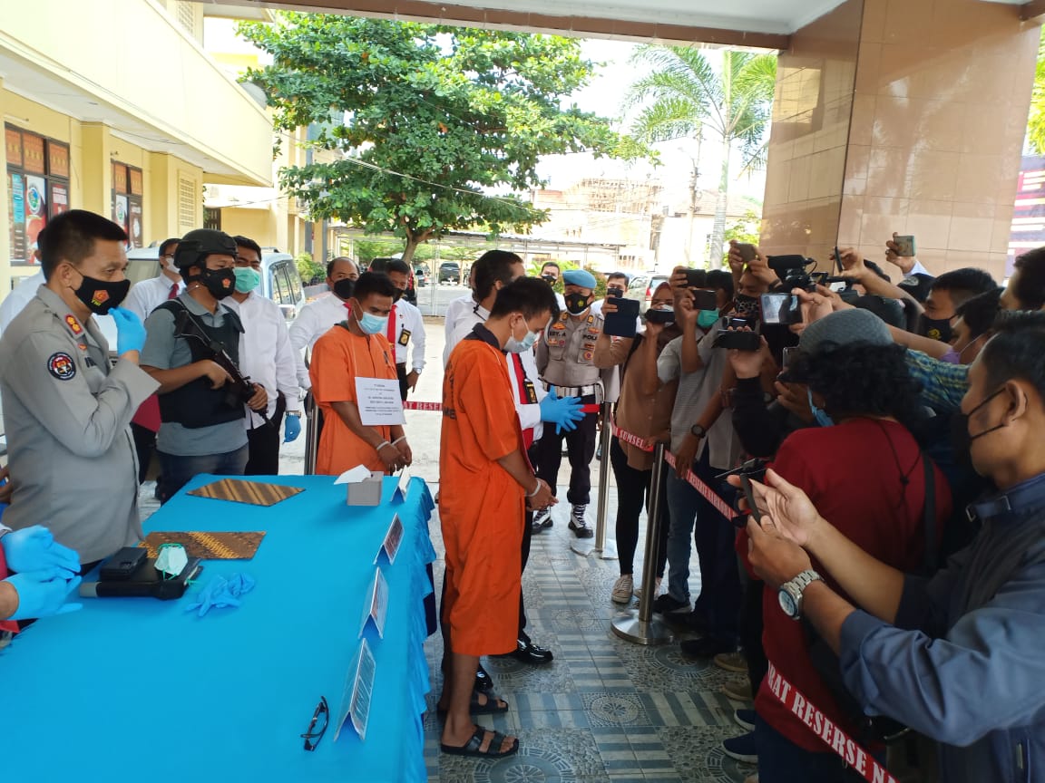 Tersangkanya adalah Syawal Trisna dan Alvino warga Jalan Pangeran Sido Ing Lautan, Lorong Kelurahan, Kelurahan 36 Ilir Kecamatan Gandus Palembang. Kedua tersangka ditangkap di parkiran mobil komplek Ilir Barat Permai Palembang Kamis (30/9/2021).