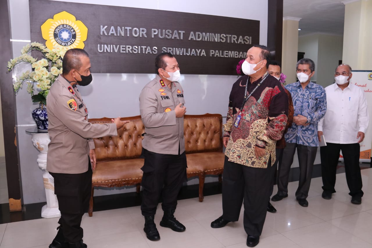 -Kapolda Sumsel Irjend Pol Drs Toni Harmanto MH,Silahturrahmi dengan  Rektor Universitas Sriwijaya Prof Dr Anissagaf Msce dan segenap Civitas Akademika Universitas Sriwijaya Palembang.