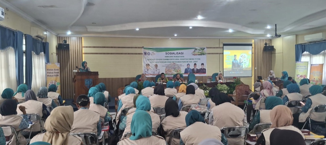 Relasipublik.com | Lahat,- Dinas Ketahanan Pangan kabupaten Lahat bersinergi dengan TP- PKK kabupaten Lahat melaksanakan sosialisasi konsumsi pangan Beragam Bergizi Seimbang dan Aman (B2SA) berbasis potensi sumber daya lokal.kamis (28/11/2025) bertempat di gedung PKK kabupaten Lahat.