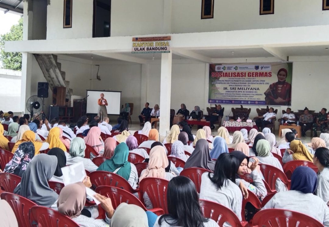 Relasipublik.com | Lahat,-Anggota Komisi IX DPR RI, Ir. Sri Meliyana, bekerjasama Poltekkes Kemenkes Palembang dan Pemerintah Kabupaten Lahat melaksanakan sosialisasi gerakan masyarakat hidup sehat (Germas ) Rabu 29 oktober 2025, bertempat di Desa Ulak Bandung kecamatan Kikim Barat kabupaten Lahat provinsi Sumsel.
