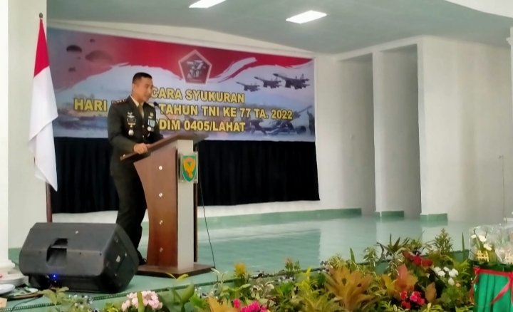 —-Kodim 0405/Lahat melaksanakan Acara syukuran hari ulang tahun TNI ke-77 tahun 2022. Rabu (05/10/2022) bertempat di gedung juang kodim 0405/Lahat.