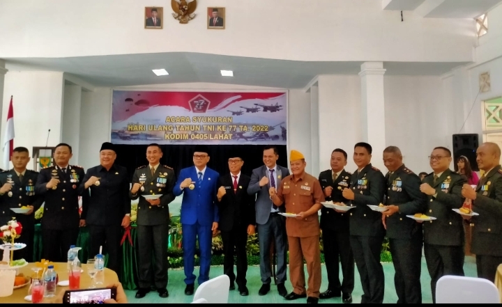 Kegiatan di lanjutkan pemotongan tumpeng, kue tar di peringatan HUT TNI ke-77 bersama Forkompimda kabupaten Lahat, Kabupaten Empat Lawang dan Kota Pagar Alam. (EY)