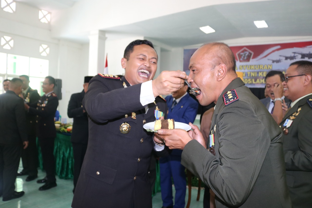 Tidak lupa, AKBP Eko Sumaryanto kembali menyampaikan ucapan selamat kepada jajaran TNI. “Selamat HUT TNI yang ke 77, mudah-mudahan TNI selalu dicintai masyarakat, semakin solid untuk mempertahankan NKRI dan semakin baik. TNI Adalah Kita,”.