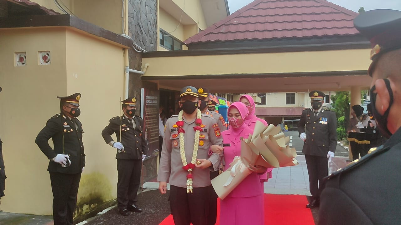 Dalam penyambutan itu, dua orang anak berseragam polisi mengalungkan bunga sebagai tanda penghormatan dan selamat datang di polres lahat kepada AKBP Eko Sumaryanto, S.I.K.